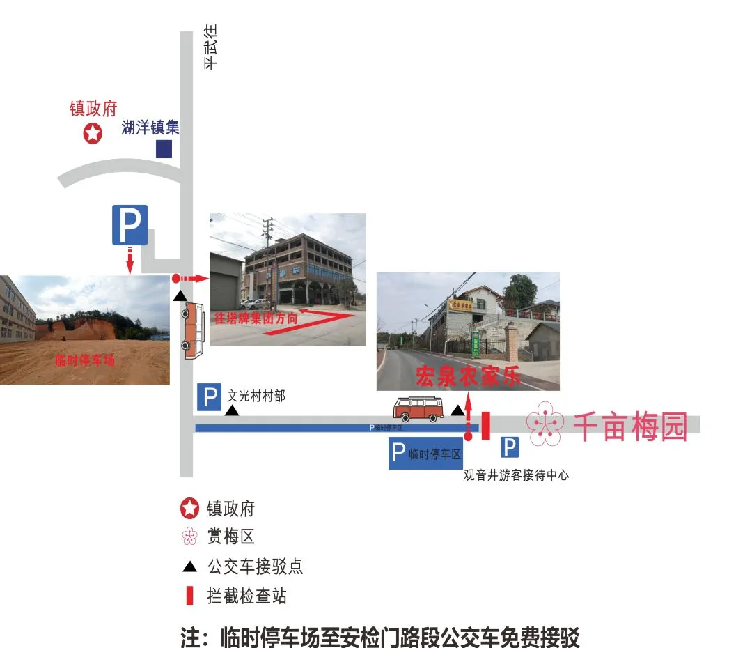 为了让游客出行更便利,在10日-12日(9点至17点)活动期间,在星汇包装临时停车场至宏泉农家乐有专用接泊车,免费接送。