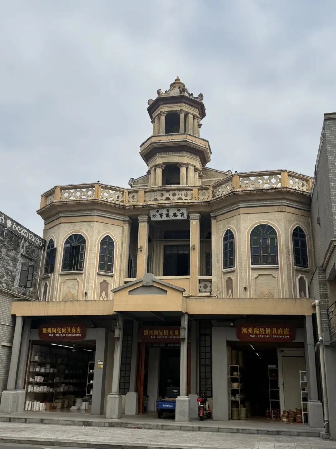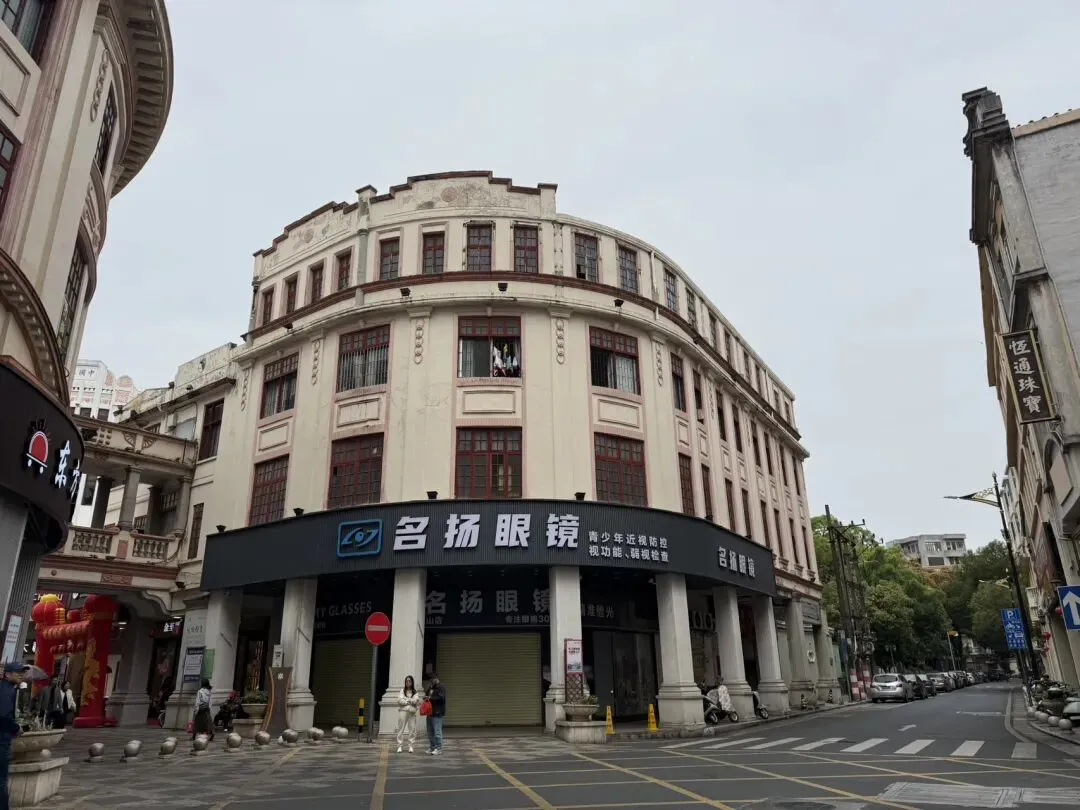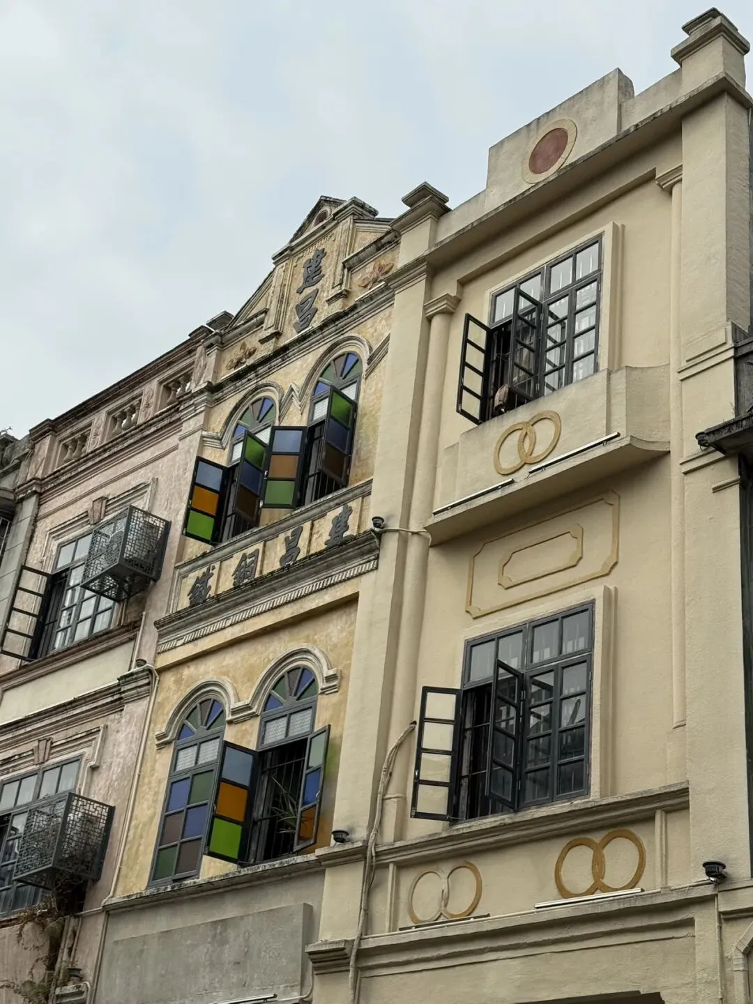 这里的骑楼至今保留着下铺上居的传统格局,一楼是沿街商铺,二三楼仍有本地居民居住。骑楼廊下藏着许多历经岁月的老店,有的合作社式商铺已经营七八十年,满是童年回忆里的烟火气息。傍晚时分,二三楼的阳台摆着绿植盆栽,晾着日常衣物,浓郁的生活气息从每一扇窗里流淌出来。百年建筑窗户偏小,光线柔和,虽带着一丝旧时光的沉静与内敛,可当你站在连绵不绝的骑楼廊下,依旧会被这份恢弘震撼,仿佛看见一幅侨乡连接世界、心系故土的无声历史画卷。街区规模极大,随意闲逛、转角都有新风景,逛到最后甚至会产生审美疲劳,更能直观感受到这片建筑群的磅礴气势。