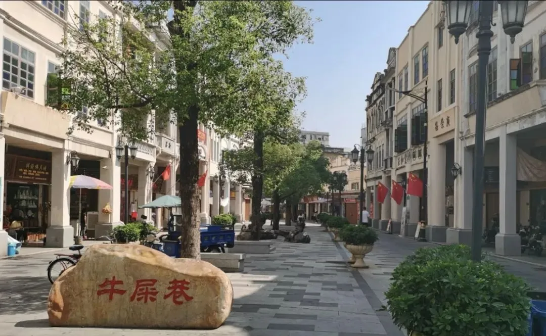 闲逛时我们还偶遇了一条名字十分特别的牛屎巷,如今也叫西宁市、革新路,这里曾是台山的金融核心区。名字看似不雅,却藏着鲜活的历史:旧时这里是耕牛交易集市,每逢圩日,村民赶着牛车前来交易,散圩后满地牛屎,便有了这个直白的名字,真实记录着当年市井商贸的繁荣景象。如今巷内银城百货、二轻产品经销店等老商铺林立,水果、香烟、百货小摊依旧热闹,见证着台山经济的变迁,在老城微改造后,这条老街也迎来了全新的生机。
