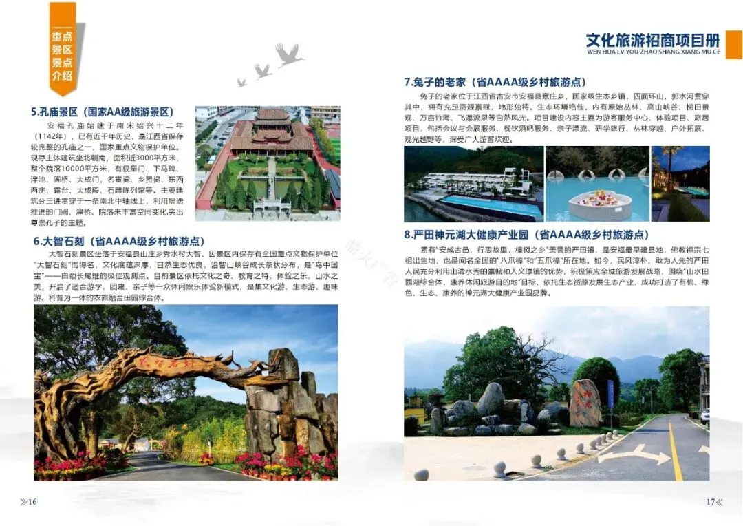 您现在的位置是:首页 > 国内旅游目的推荐 > 正文 国内旅游目的推荐 安福文旅项目旅游资源招商手册 admin2026年02月28日 13:36:04国内旅游目的推荐1 安福文旅项目旅游资源招商手册点击上方“安福文旅”关注我们作者© 2026年2月28日/第808期来源 / 安福文旅编辑 / 邹凯琳 复审 / 江燕飞 终审 / 欧阳泓往期回顾发现我们联系我们投稿邮箱:afxwhgdj@163.com联系电话:0796-7622275地 址:江西省安福县城北商业街县文广旅局吉安惠民卡 转载请说明来源于"旅荐网",部分内容转载自网络,如有侵权请联系qlwl@foxmail.com删除 本文地址:https://www.15386.cn/post/127725.html 上一篇 赵伟|关于三亚建设国际旅游消费城市的几点看法 下一篇 周末踏春,西安周边开车1小时可到的景点 相关文章 嘉定往返太仓景区定制专线开通!票价为...... 周末踏春,西安周边开车1小时可到的景点 带娃旅游别只顾着打卡,真正的教育藏在历史文化里 赵伟|关于三亚建设国际旅游消费城市的几点看法 利川洋气弯哒,景区也做成糕点的模样! 庐山等多地景区官宣3月免门票! 8-16旅游出行前要做好哪些准备? 云南旅游,虎跳峡:金沙江畔的雄奇史诗与人文回响 比网红景点更真实的越南,被我找到了 市政府与广西中医药大学、广西旅游发展集团举行三方座谈会 强化沟通交流 携手共谋发展 发表评论 取消回复 评论列表 这篇文章还没有收到评论,赶紧来抢沙发吧~