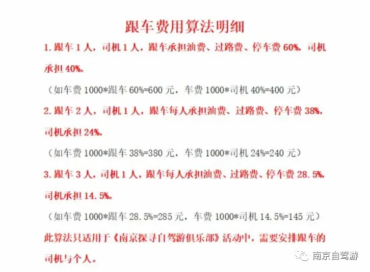 六、本次行程为自驾游,报团请自备车辆,无车想跟团请自行联系报团车主拼车,参考跟车费用公式