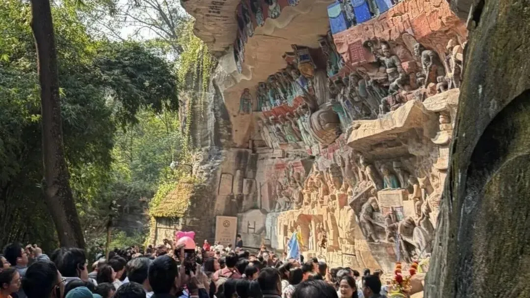 将千年石刻与互动机器人结合,让厚重文化焕发新潮活力。游客既能感受石刻的历史厚重,又能体验前沿科技的趣味,春节期间机器人成为景区最具人气的打卡亮点。
