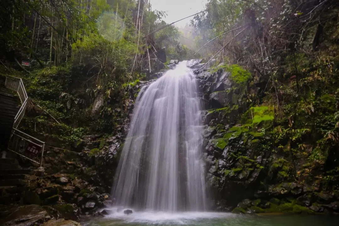 神龙潭瀑布飞流直下,千年红豆杉苍翠挺立,沿溪穿行竹林间,清泉潺潺、清凉惬意。