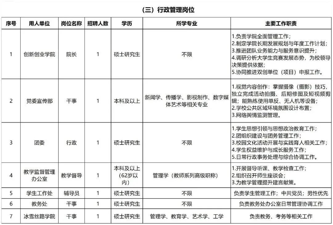 (四)全日制统招院校毕业,教师需为硕士研究生及以上学历。高层次人才、银龄教师等特殊岗位学历要求可按招聘计划执行。