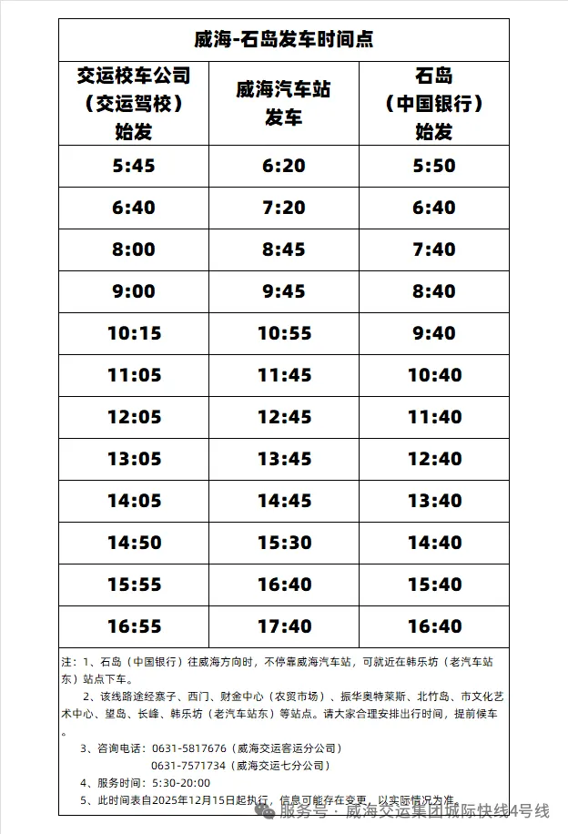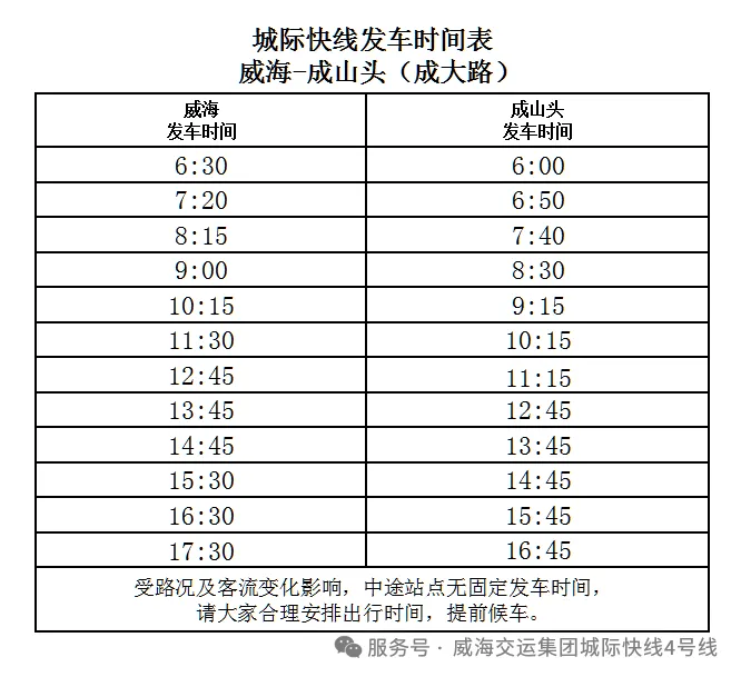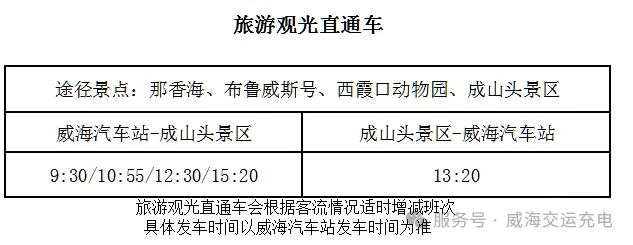 荣成、石岛、乳山、成山头、鸡鸣岛、旅游观光直通车发车时间合集