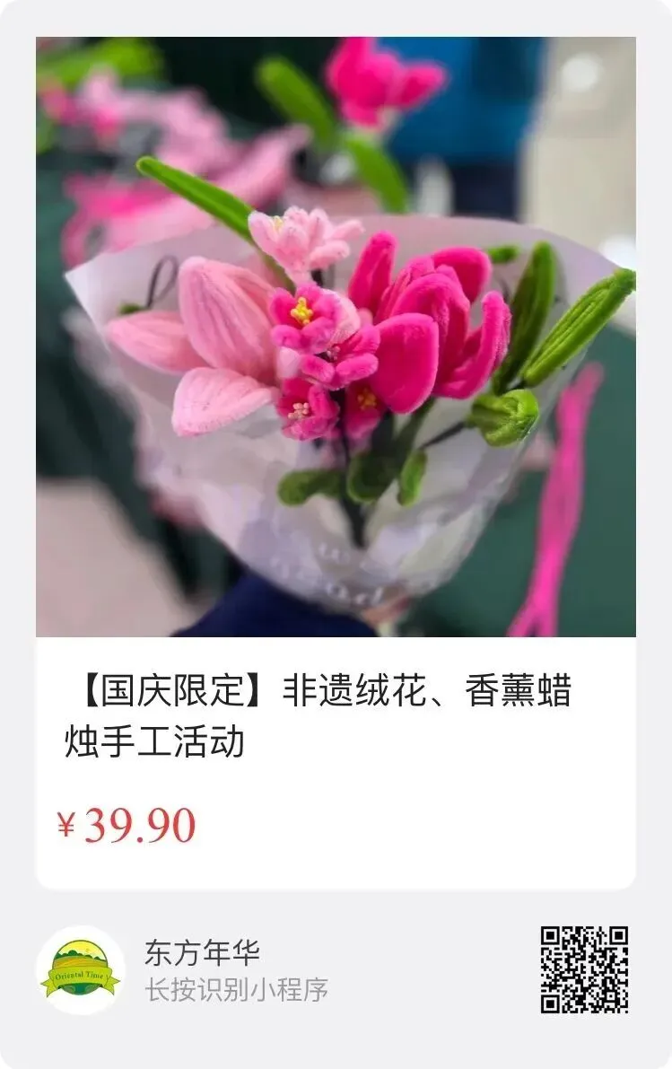 香薰蜡烛、非遗草花灯、多肉组合…… 每一样都是能带走的 “自然纪念品”,大人小孩都能玩得投入,不仅锻炼动手能力,还能在这个国庆放松自己。