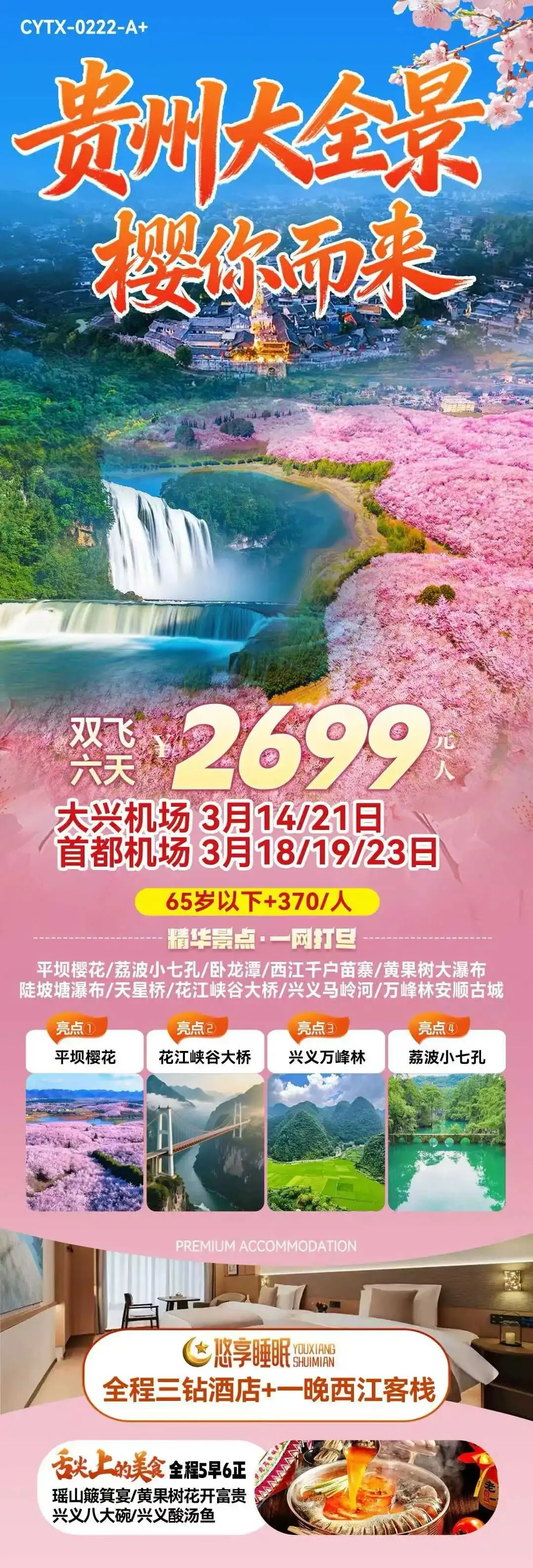 🌸 樱花正盛,山水全览,一价畅玩贵州!