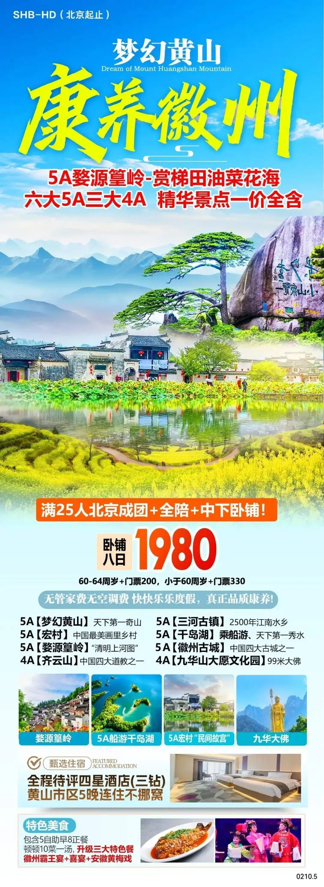 💯💯【康养徽州.梦幻黄山】卧铺八日游