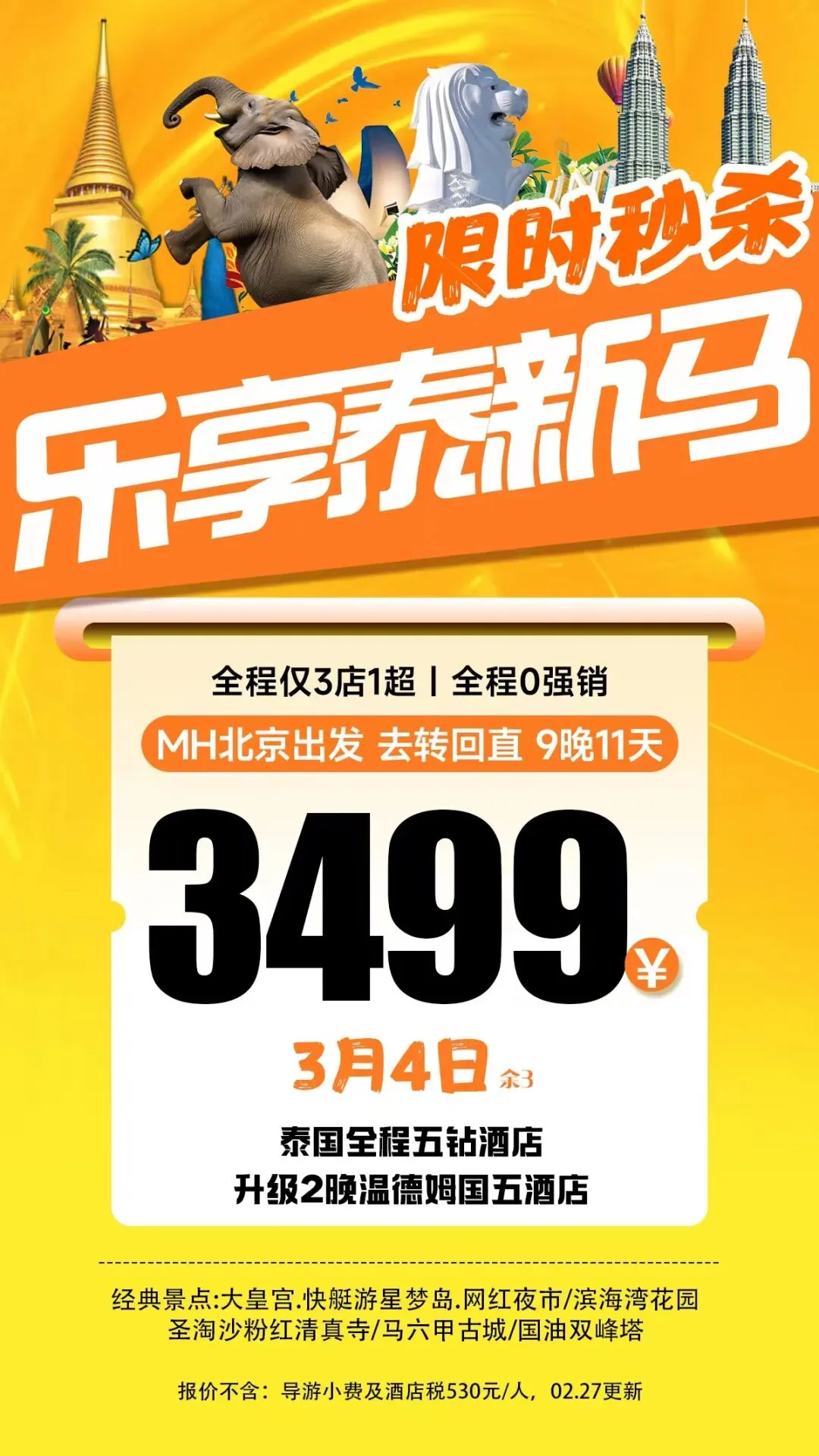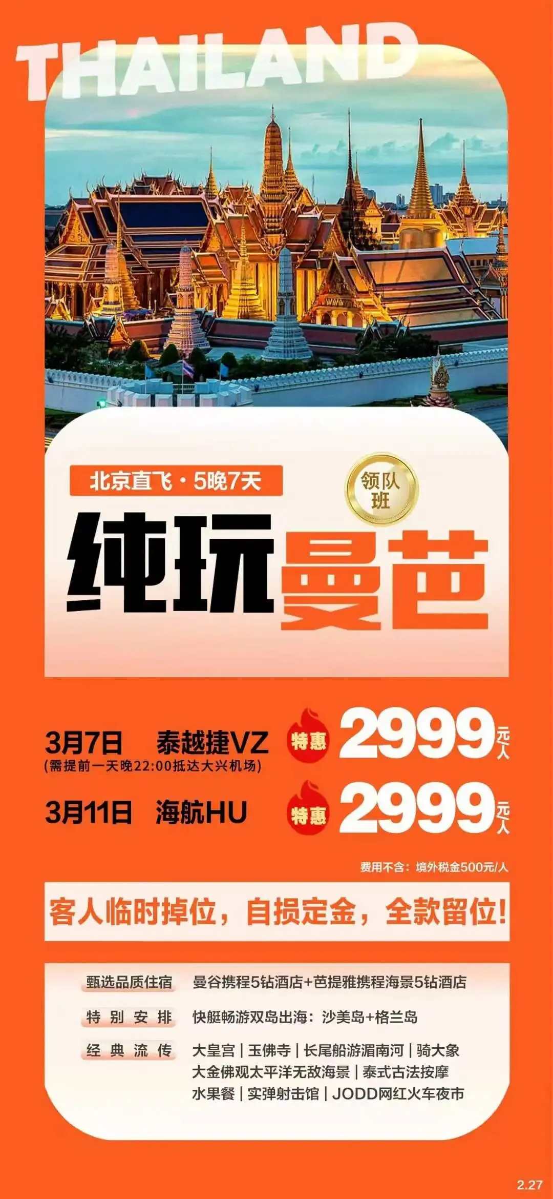 💰 3月14/21日 双飞6天 仅2班特惠价:2699元/人