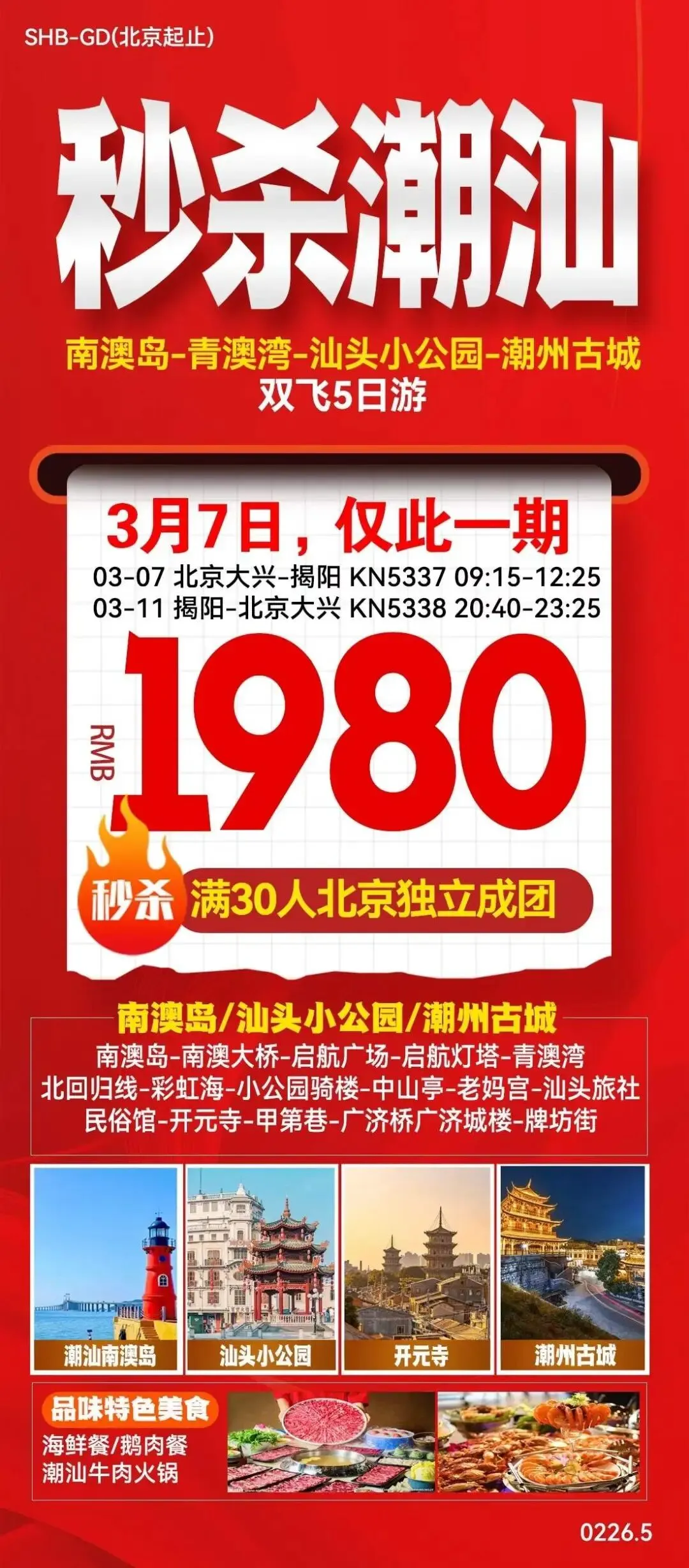 🏆【秒杀潮汕】1980秒杀!3月7日!仅此一期!