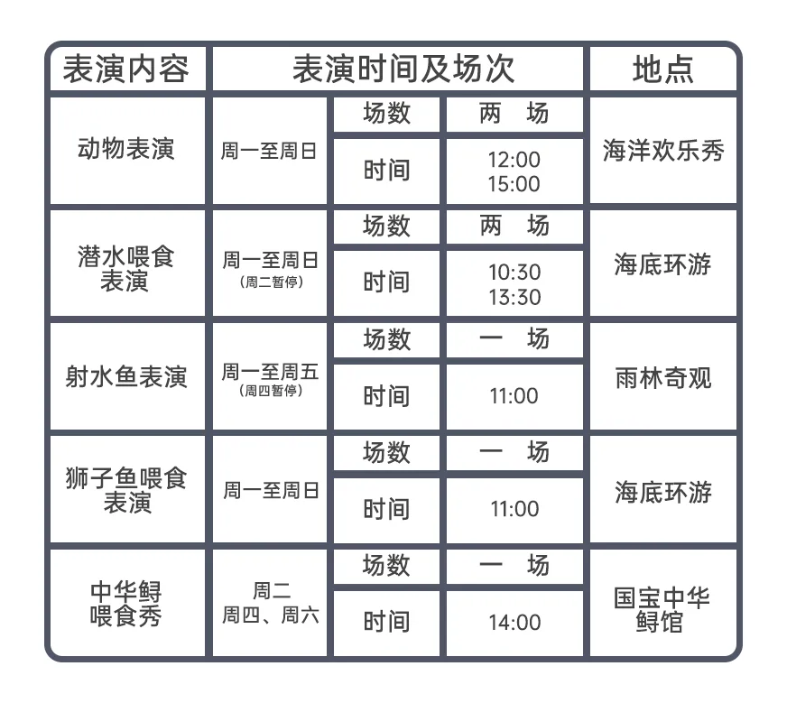 贴心附上表演时间表,记得提前前往