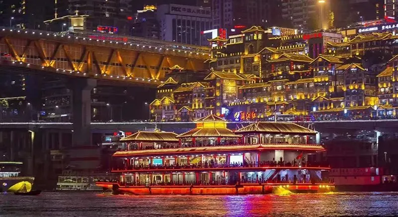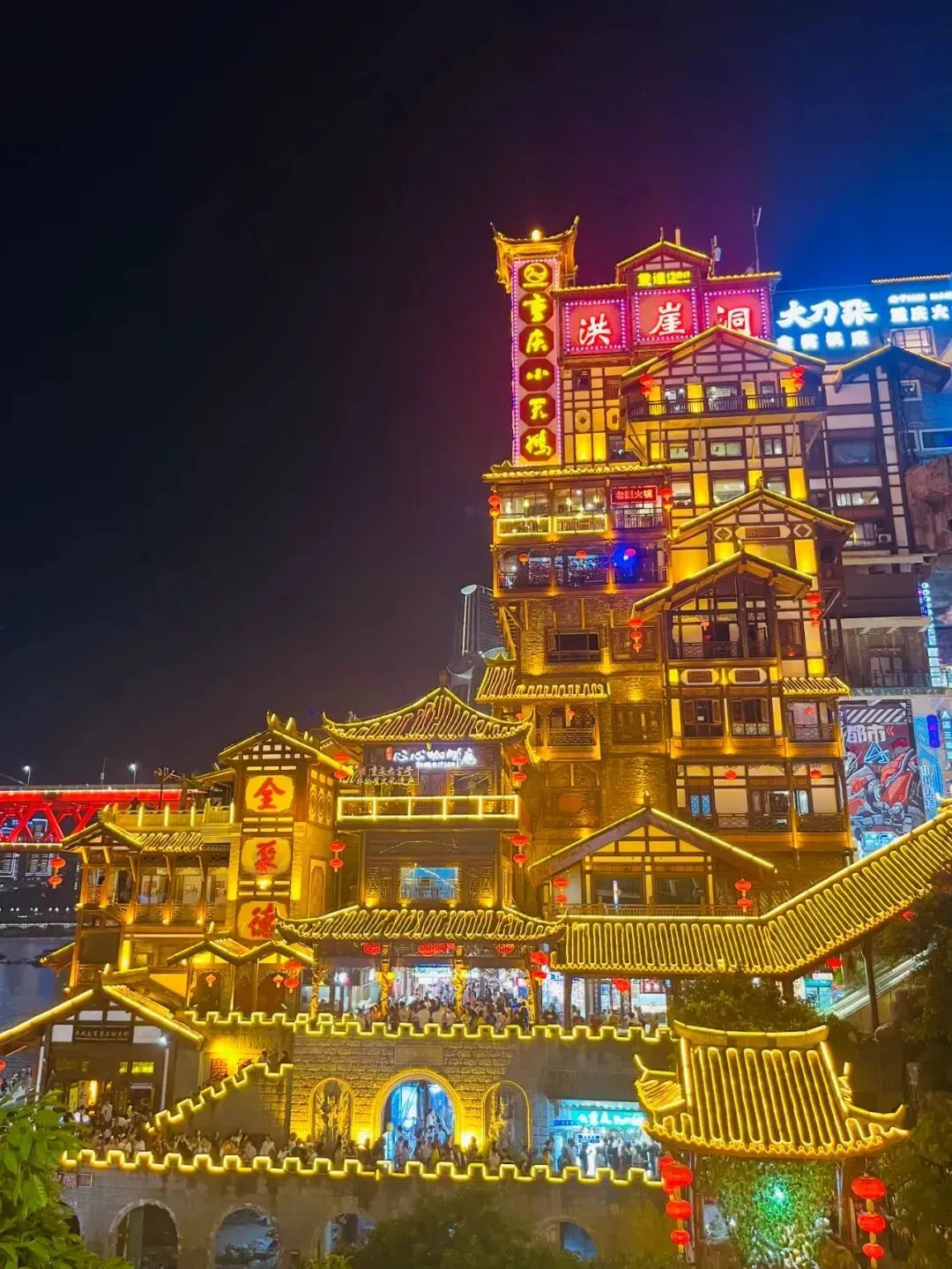 有人说,这是现实版《千与千寻》的汤屋;有人说,这是浮华世界的浪漫一角。这里有独具巴渝特色的吊脚楼。这里晚上的夜景非常哇塞,暖黄色的灯光,让你体验到如梦如幻,已被列入成渝十大文旅新地标。