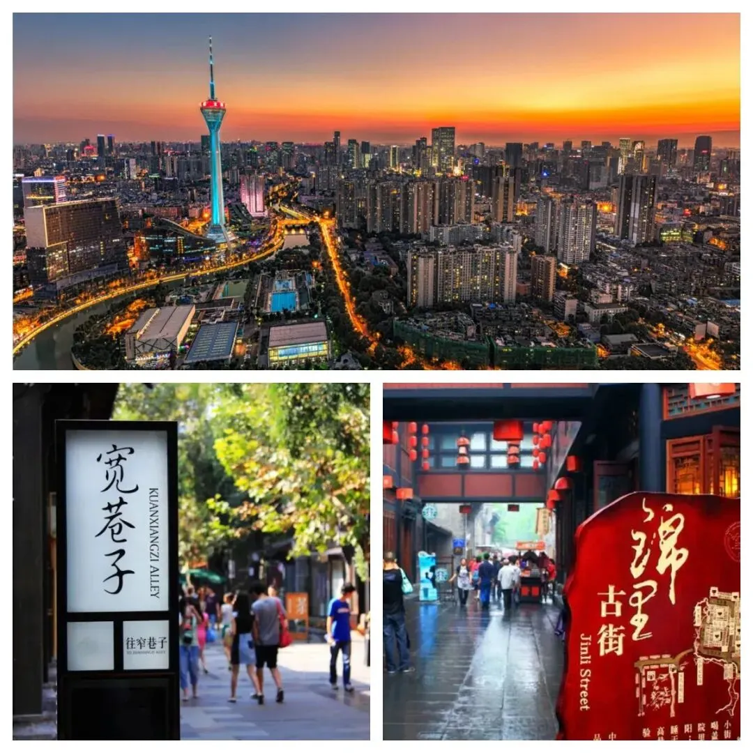 锦里、宽窄巷子、春熙路、人民公园