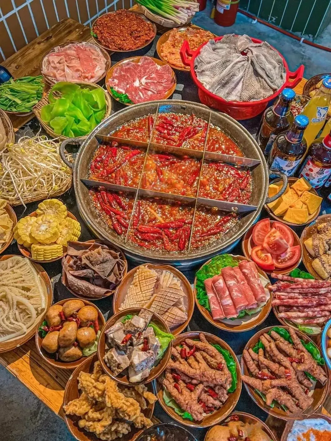 ④美食天堂:重庆火锅、小面、酸辣粉,成都串串,抄手,兔头、串串、烤鱼……