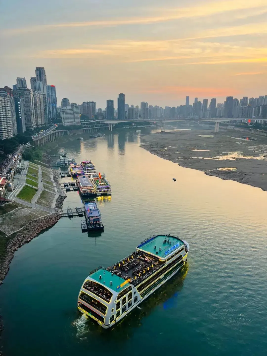 你还可以坐着轻轨与过江的行人对望