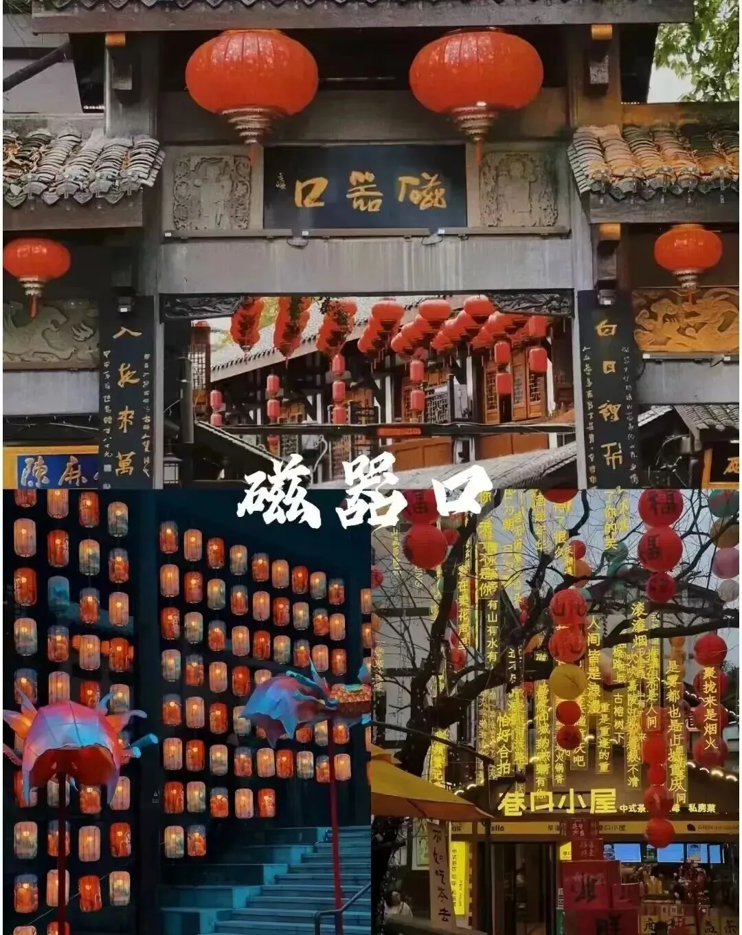 乘车前往国家AAAA级景区【千年古镇磁器口】中国历史文化名街,重庆市重点保护传统街,重庆"新巴渝十二景",巴渝民俗文化旅游圈。磁器口古镇位于重庆市沙坪坝区嘉陵江畔,始建于宋代,拥有"一江两溪三山四街"的独特地貌,形成天然良港,是嘉陵江边重要的水陆码头。曾经"白日里千人拱手,入夜后万盏明灯"繁盛一时。巴渝文化、宗教文化、沙磁文化、红岩文化和民间文化,各具特色。一条石板路,千年磁器口,是重庆古城的缩影和象征,被赞誉为"小重庆"。