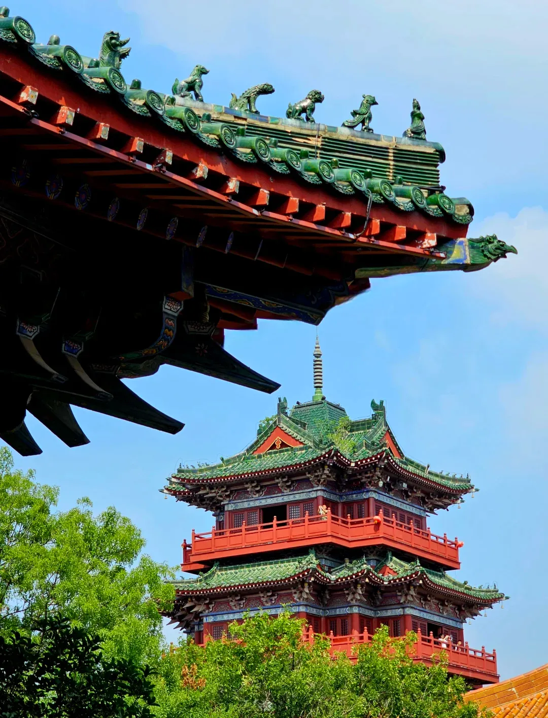 皇家寺院的梵音不绝 北宋皇家寺院,鲁智深倒拔垂杨柳的故事更添传奇。寺内木雕千手观音精美绝伦,梵乐表演让人心神宁静。