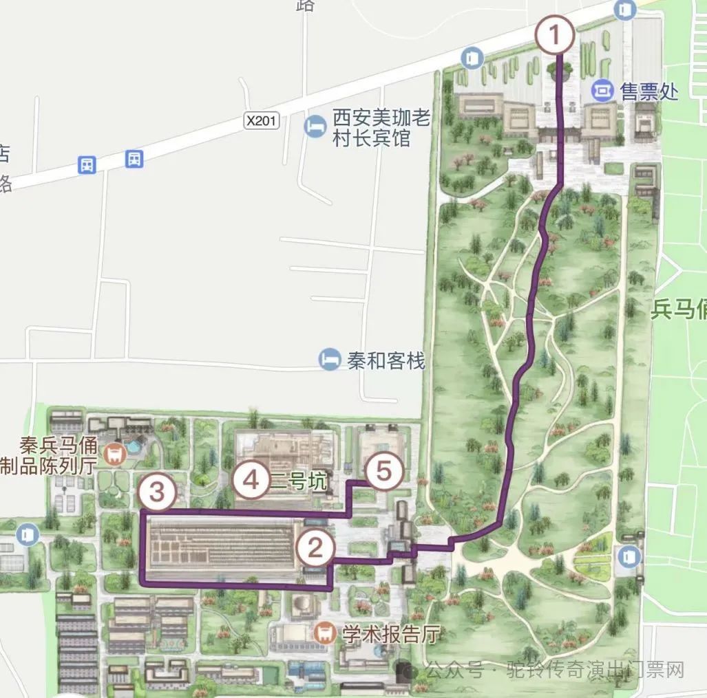 经典游览路线:北2号门→一号坑→三号坑→二号坑→文物陈列厅