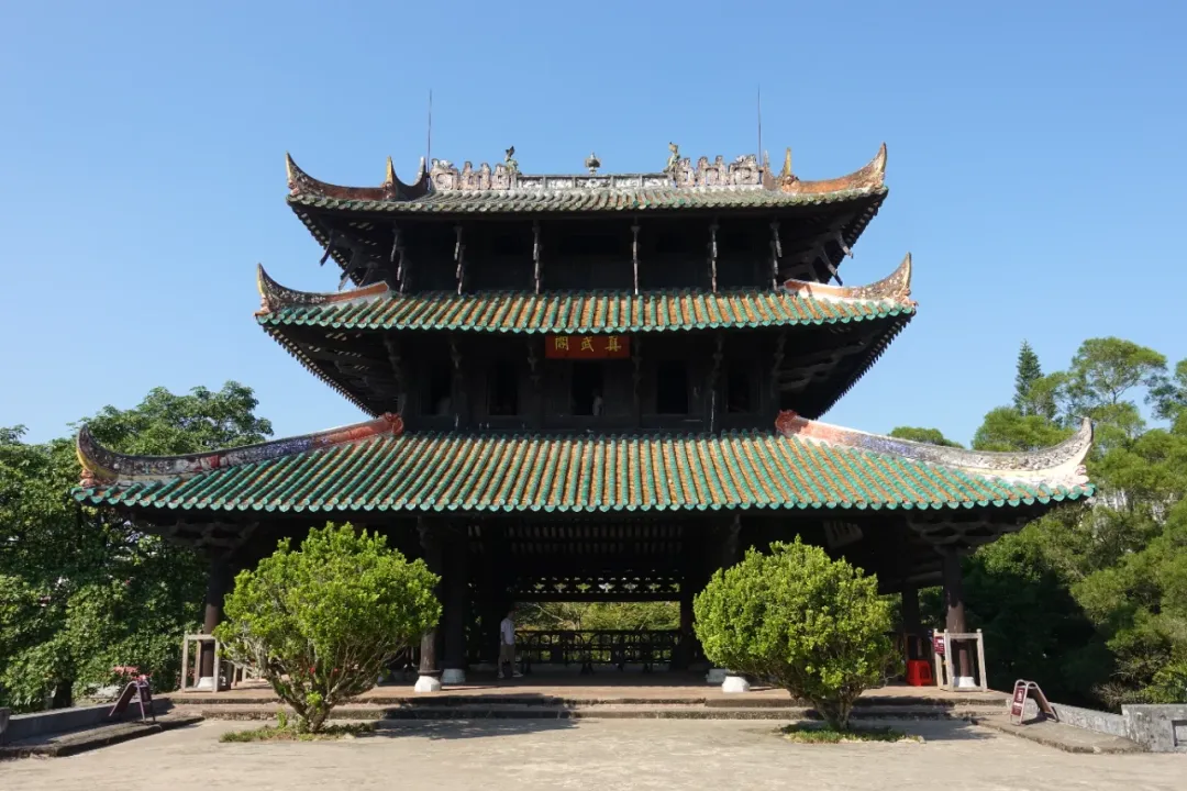 • 推荐理由:全木构、无一颗铁钉,用杠杆原理悬空立柱,历经数百年风雨地震不倒,被称为“天南杰构”,是中国古建筑奇迹,必看必听讲解。 经略台·真武阁, 经略台位于广西容县县城东门外人民公园、绣江岸边,距城约一里,台上建有三层高阁——真武阁。 经略台因唐代诗人元结得名,元结于公元760年前后任容管经略使。真武阁始建于明万历元年(1573年),万历四十八年至清同治十二年间有文献记载的修缮共六次,1956年中央文化部拨款重修。 真武阁的核心价值不在历史渊源,而在罕见的建筑结构。 阁共三层,高约13.20米,底层面阔13.80米、进深11.20米,为三开间布局。底层8根金柱直通上层,形成回廊式结构。 中层最具奇观:4根大金柱柱脚悬空,距楼板2–3厘米不落地,结构精巧,令人惊叹。