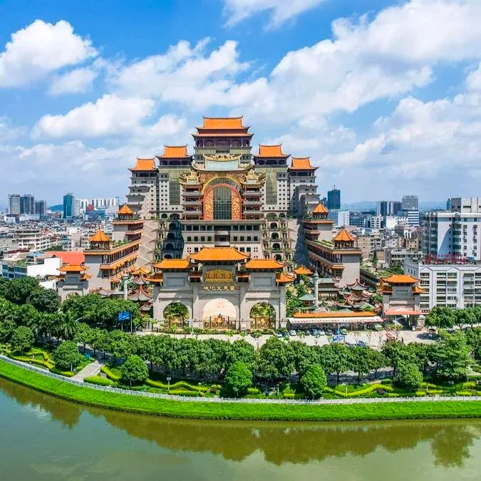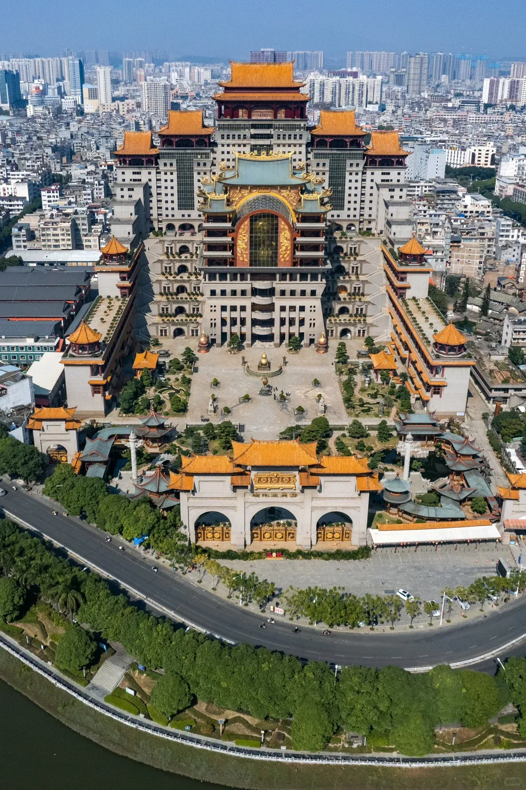 • 背景传奇:玉林顶流都市传说,传为台湾富商在“金线吊葫芦”风水宝地巨资兴建,自带神秘气场。 • 震撼亮点:拥有30米高世界最大室内铜制弥勒佛像,由1000多块铜片打造、鎏金壮观。 • 游玩体验:气势恢宏的仿古宫殿,精工细雕,奢华震撼。