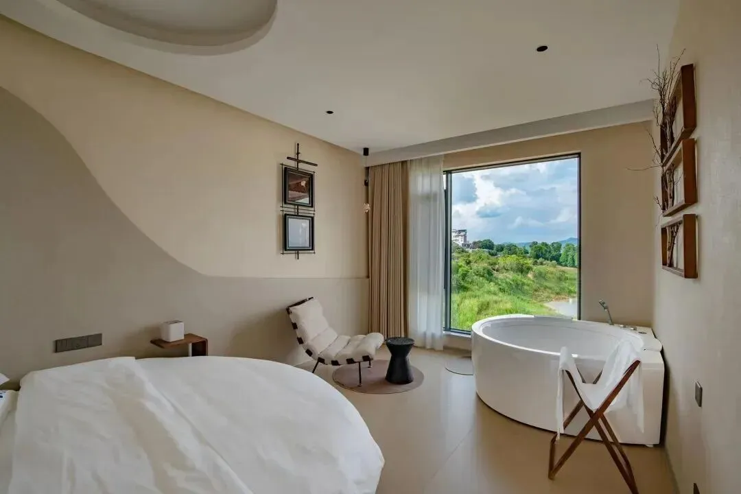 酒店客房结合了空间设计、生活美学,将现代时尚与中国传统文化融入其中,于细节处透露巧妙构思,兼顾惬意与私密,最大程度地体现客房的空间感,极尽呈现中式旅居生活方式。