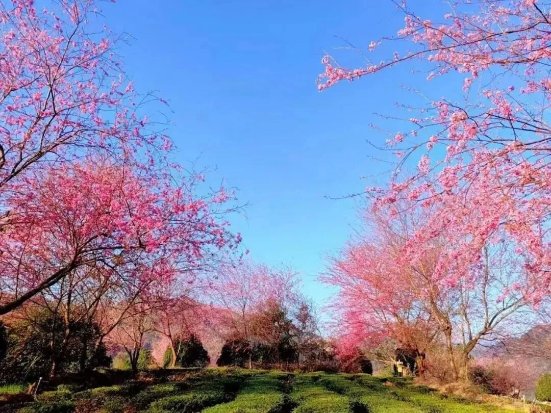 繁花绕村落,茶香伴清风,那一树树粉艳、一片片柔红,不喧不闹,却悄悄温柔了整个春天。
