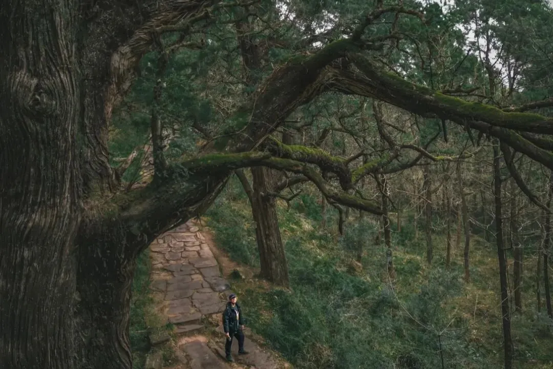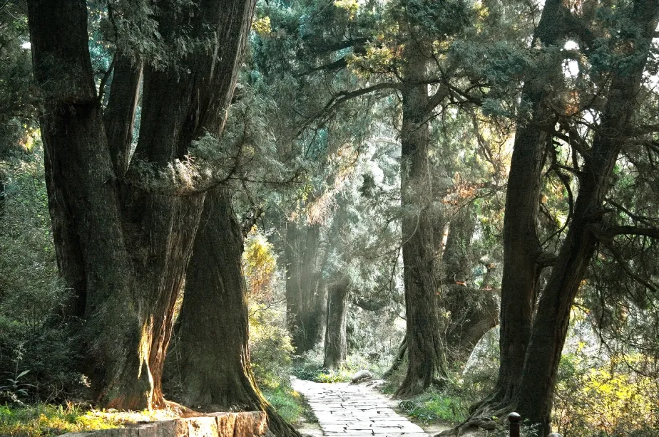 近万株古柏扎根大地,枝干虬曲,遮天蔽日,青石板路蜿蜒其间,沉淀着岁月的痕迹。