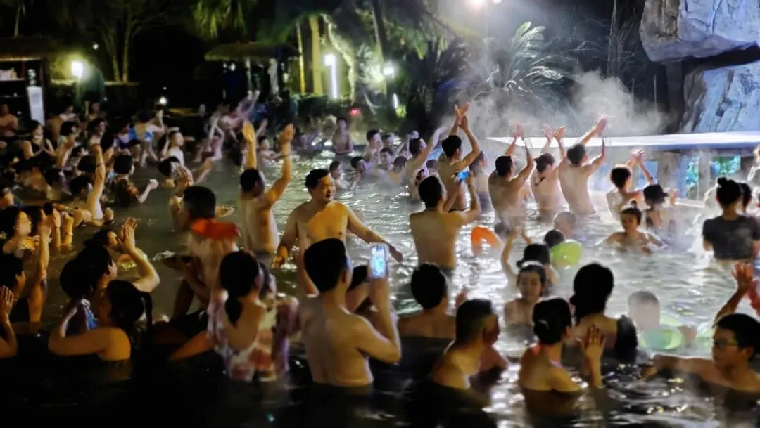 待夜幕轻垂,泡池边好戏上演,氤氲热气包裹周身,连紧绷的神经也慢慢舒展。