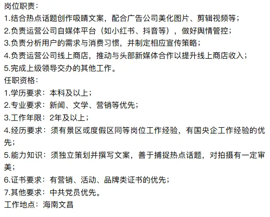 4.经历要求:须具备旅游行业或国央企同等岗位经验;