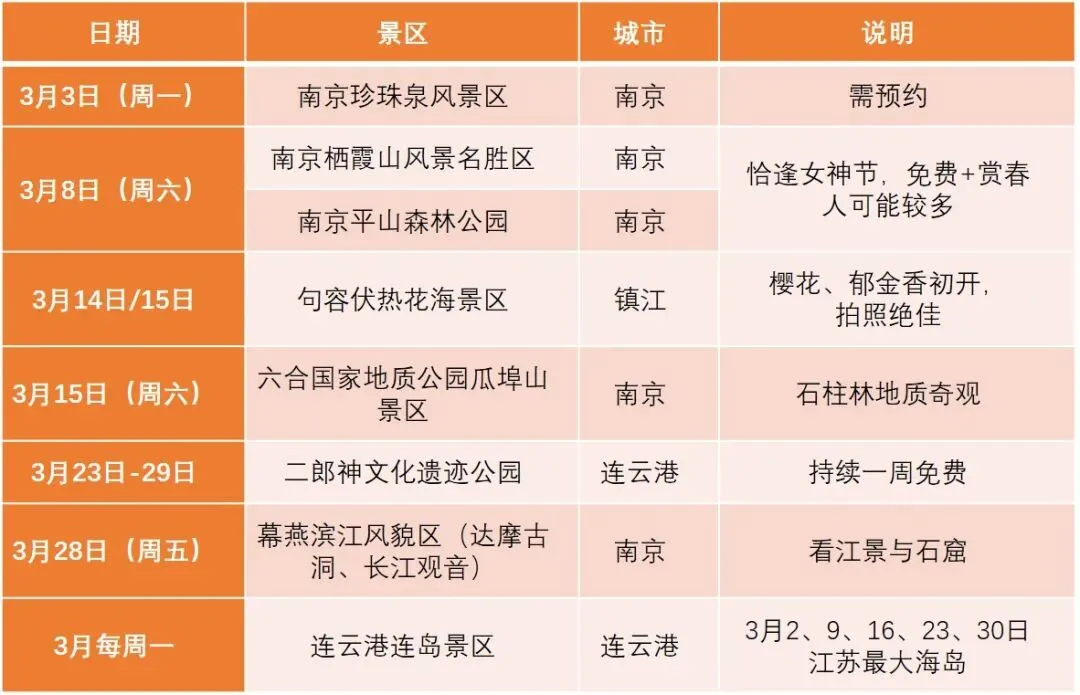 江苏很多景区实行“免费开放日”制度,3月特别密集。切记:这些通常只免当天,且必须提前预约!