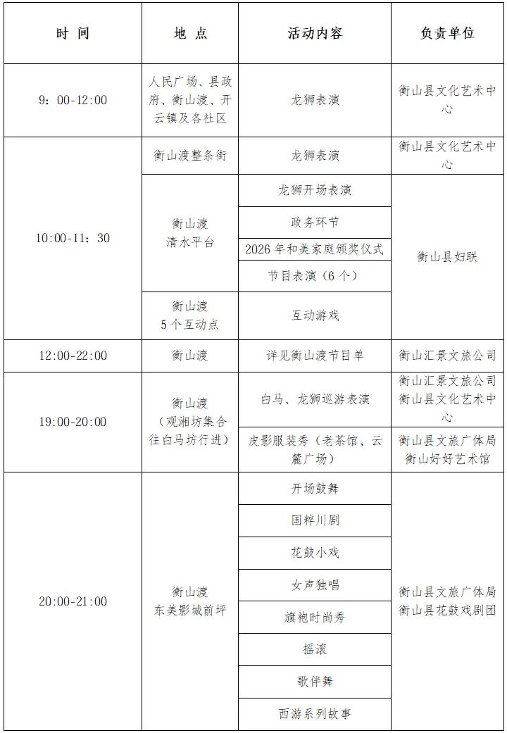 2026年衡山县元宵节