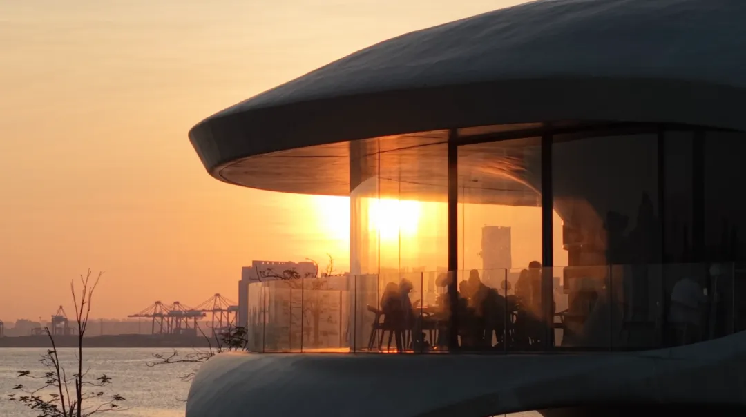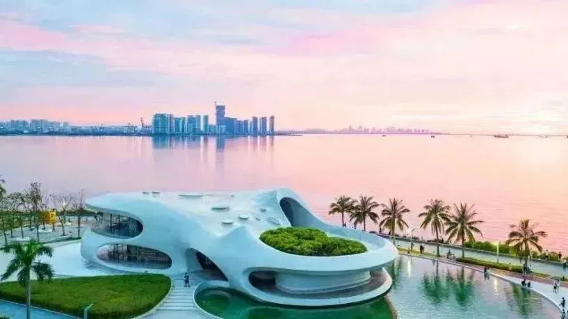 而是蜿蜒在海口湾畔的一抹白色建筑艺术