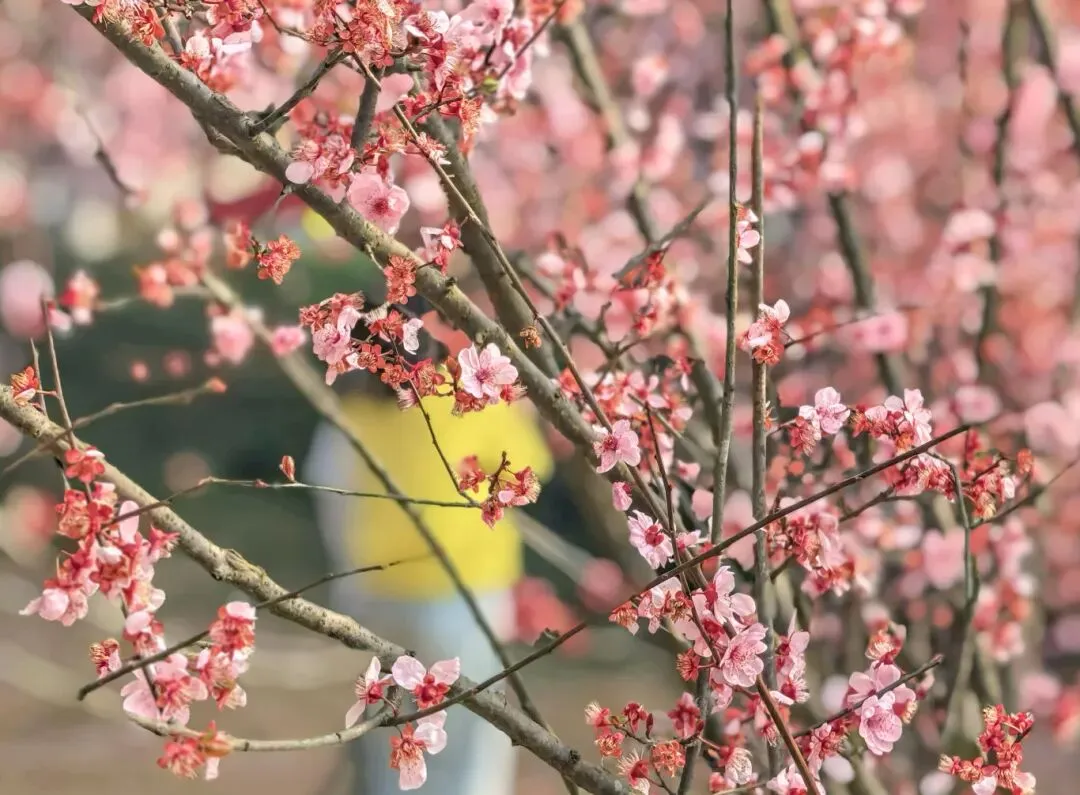 在中国夏布小镇、何家坡公园、荣昌海棠公园、同心公园、濑溪河沿岸等地,各色梅花悄然绽放,一树树梅花映入眼帘。