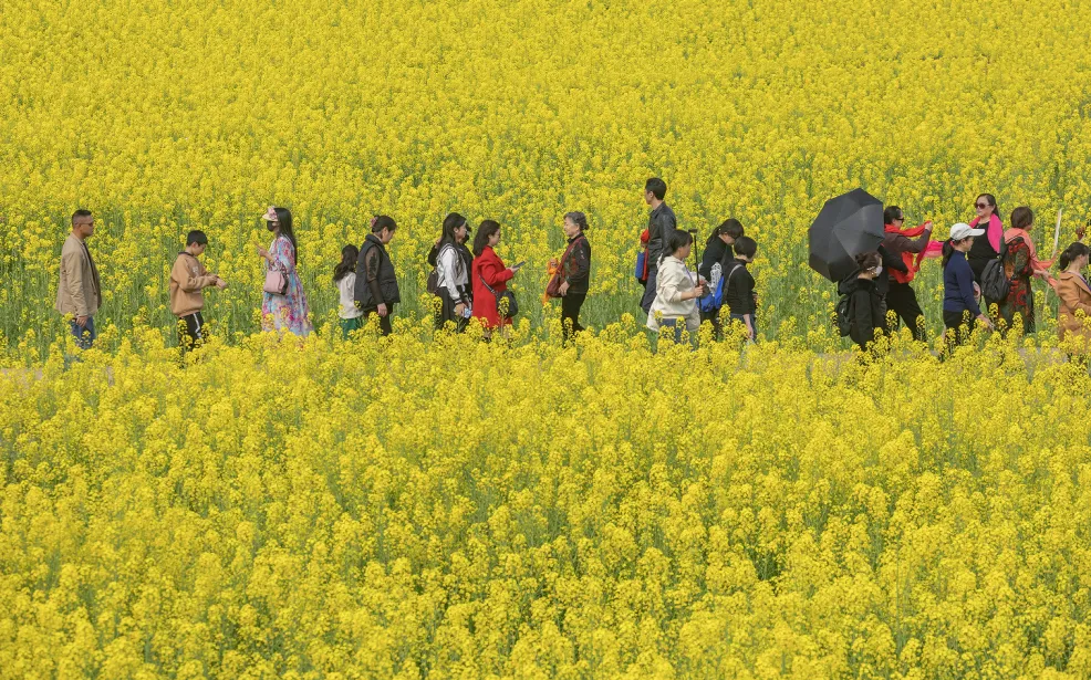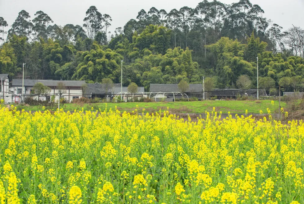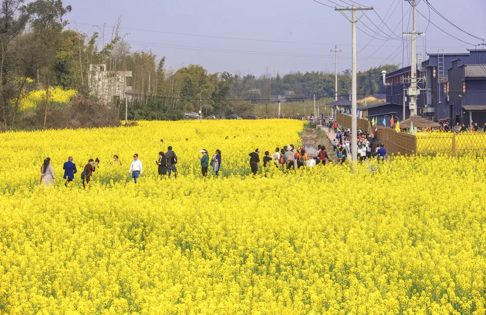 在清流镇油菜花田里,一眼望去,小小的金黄色花瓣,连成一望无际、辽阔无垠的金色海洋,泛起层层波浪,散发出淡淡清香。