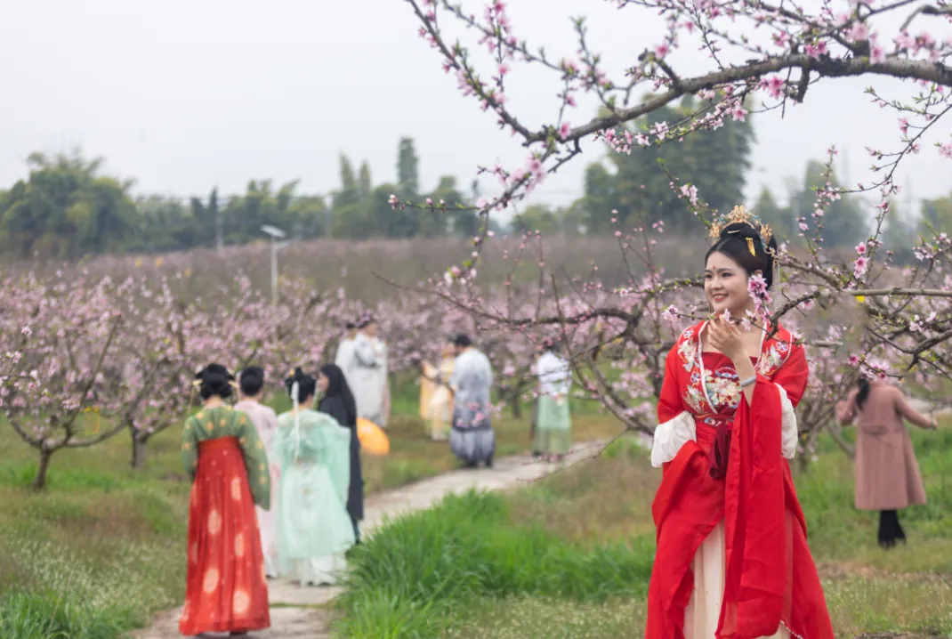 荣昌双河街道桃之夭夭果园内,千余株桃花已然绽放,美不胜收。微风吹拂,层层叠叠的桃花,花瓣随之摇曳轻颤,涌动着一股春潮。