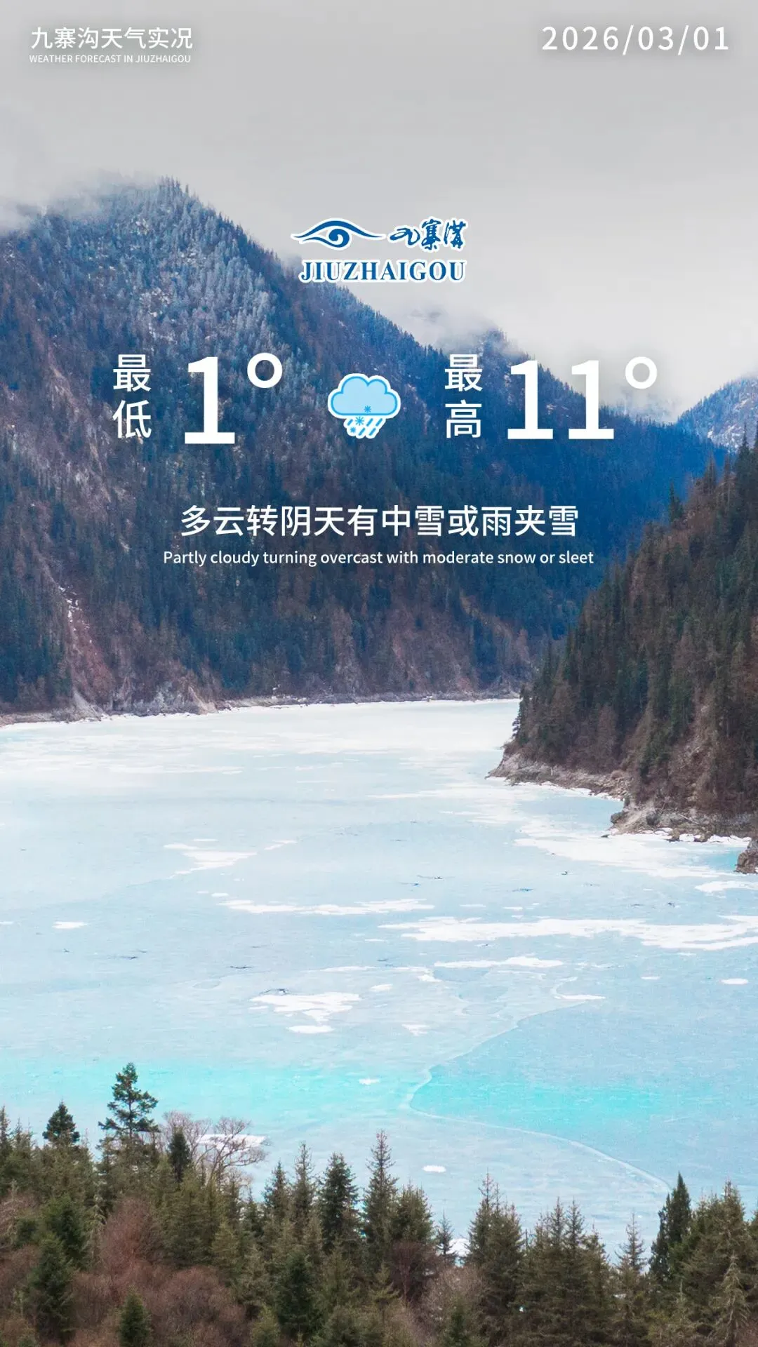 九寨沟景区发布:未来两天天气预报