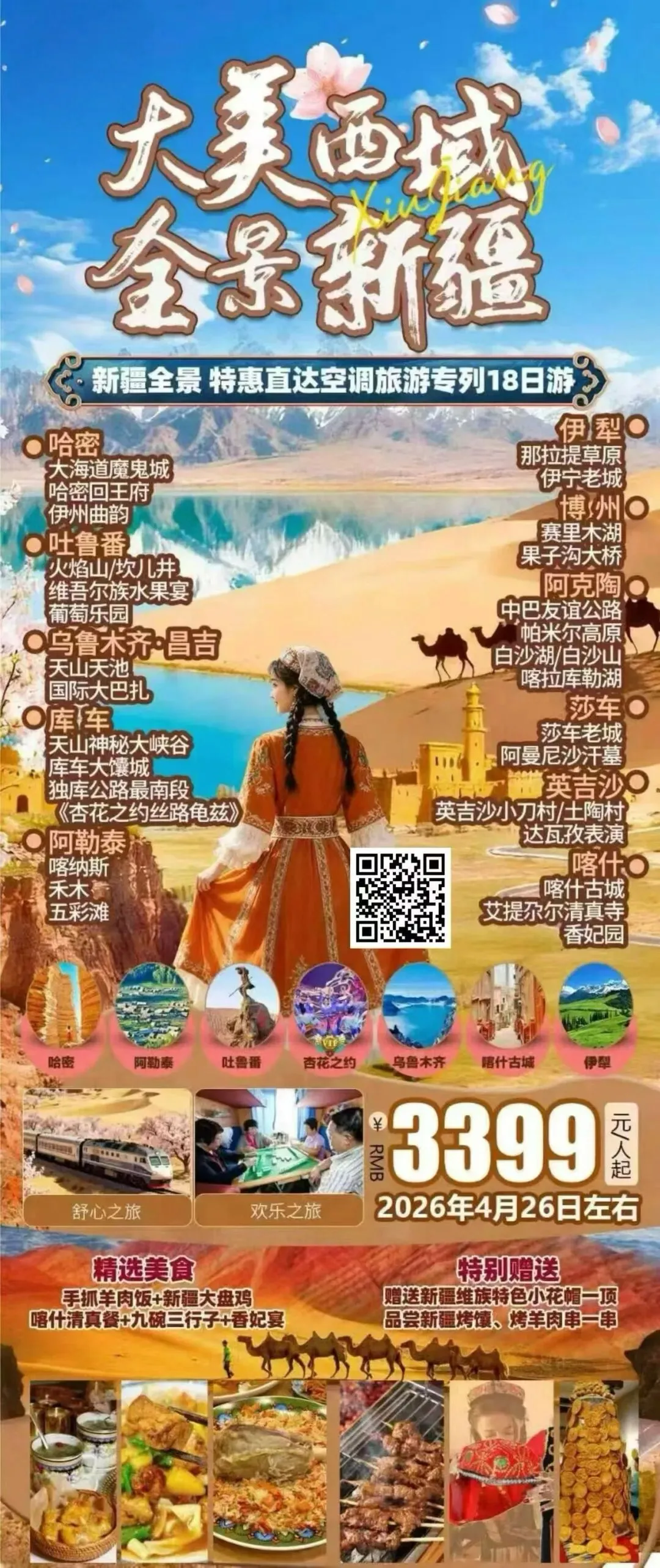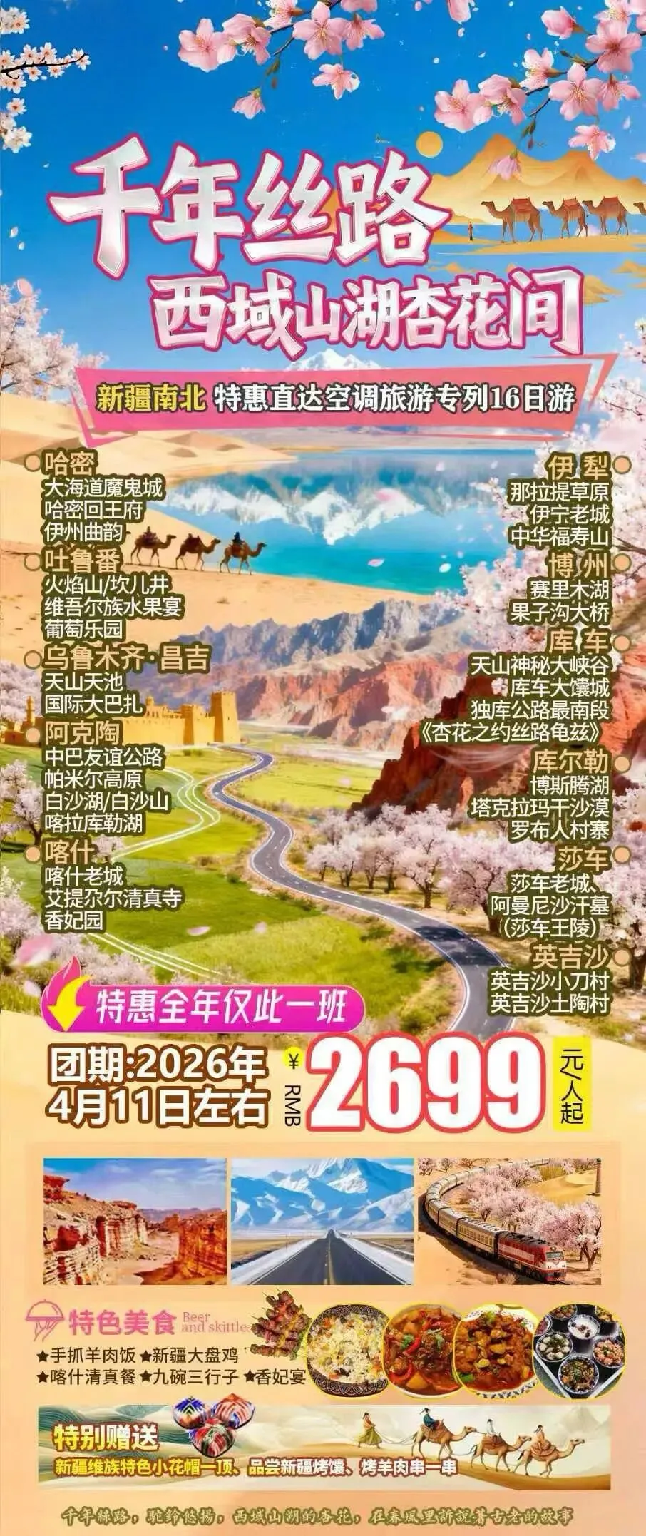 🚞🌸2026【春韵西域·杏花丝路行】直达新疆空调专列13日游