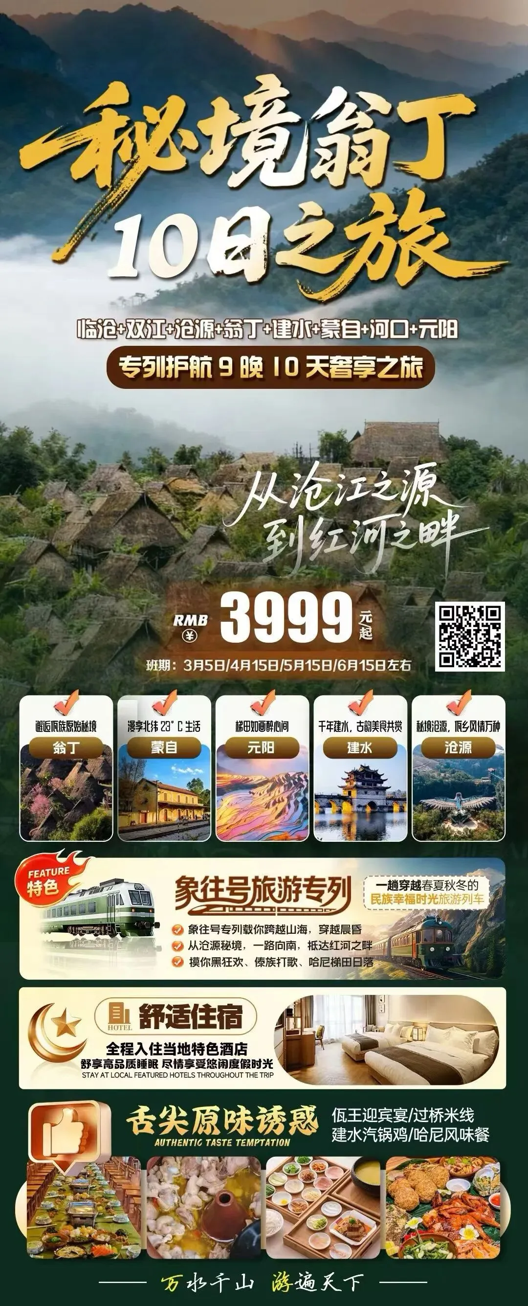 🌿 秘境翁丁纯玩专列10日,3999元起!