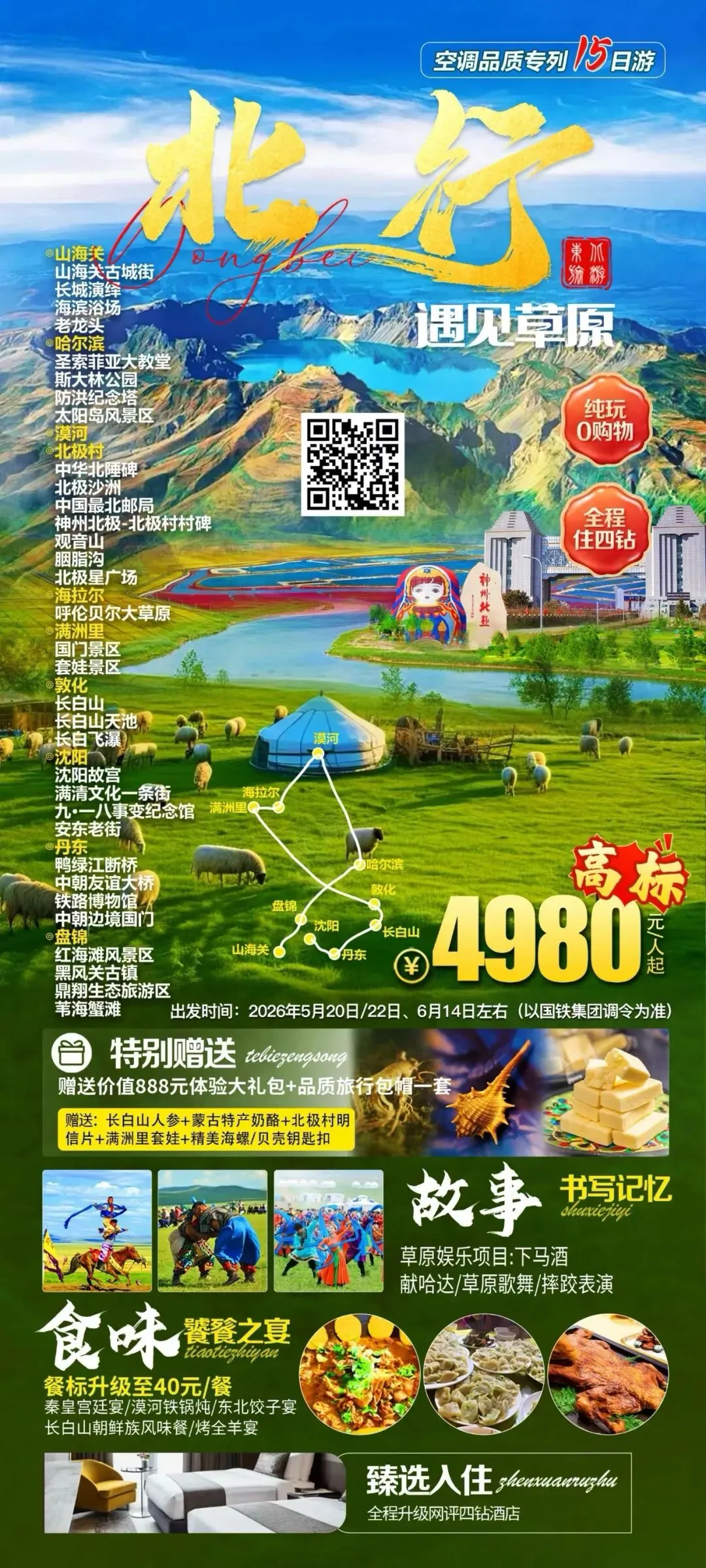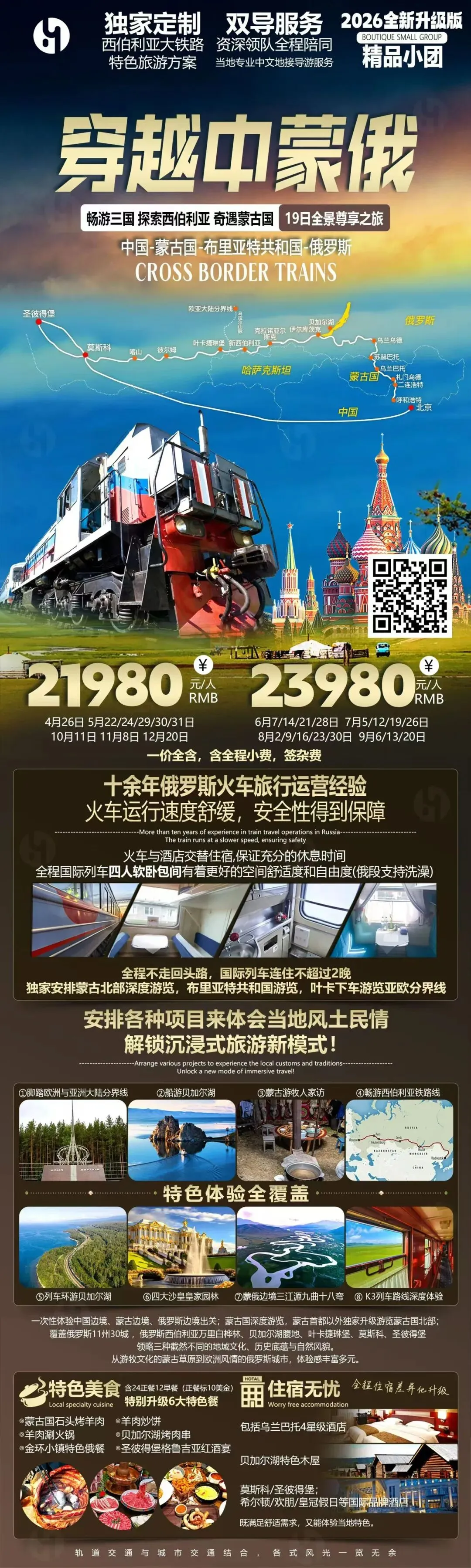 ✅ 4晚专列+6晚舒适酒店,纯玩0购物
