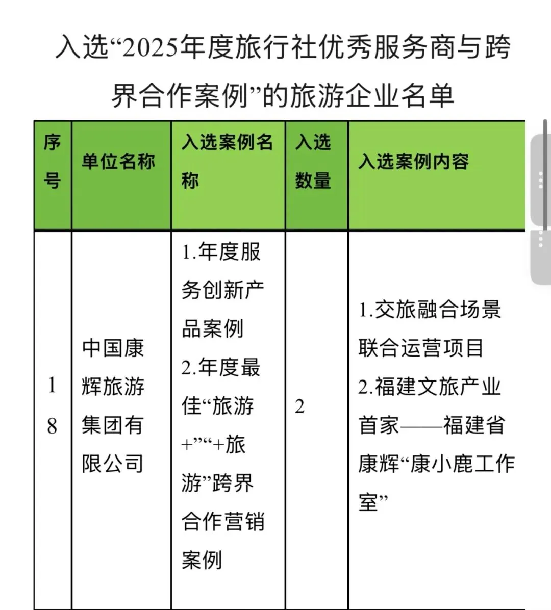 “+旅游”跨界合作营销案例评选中,福建省康辉“康小鹿工作室”凭借创新模式、资源整合与市场实效脱颖而出。