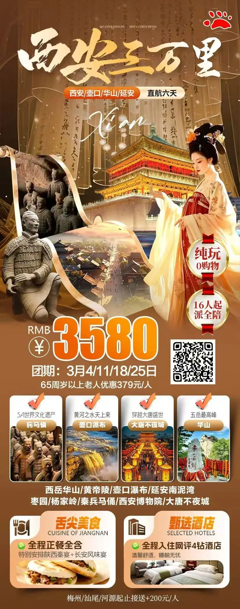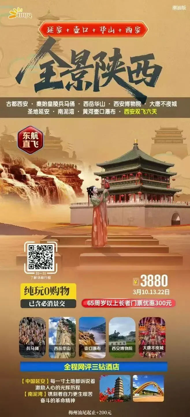 路线四【西安三万里—直航六日游】