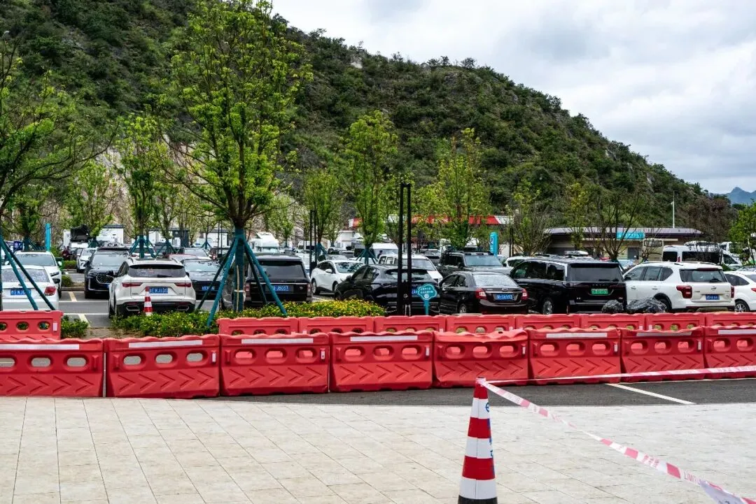 车辆行驶在高速之上,当望见花江峡谷大桥的塔尖时,便进入收费站,不久即抵达服务区。虽然距离服务区还有一小段路程,但道路上已经挤满了车辆,无法驶入停车场。停车场的管理显得有些混乱,游客们不知所措。转了几圈后,我终于找到一个并非正规车位的地方将车停下。不远处仍在施工放炮,安全员要求游客迅速撤离车辆,但车辆的安全能否得到保障却无从得知。此时也别无他法,只能冒险离开,听天由命。
