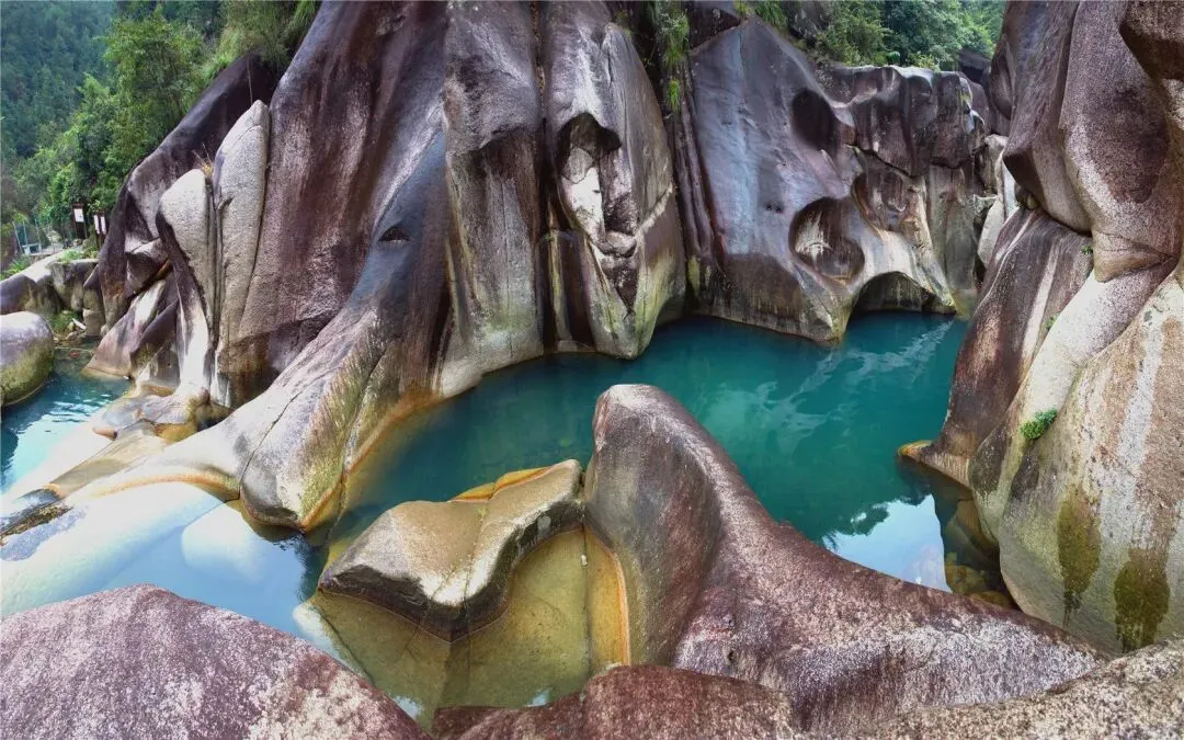 杨家溪以古榕树群与枫香林闻名,榕枫公园内一棵800年树龄的古榕树冠直径达51米,清晨阳光透过树荫洒下丁达尔光束,老农牵牛、村妇赶鹅的场景如诗如画,被誉为“绿野仙踪”现实版。秋季枫香林染红溪谷,乘竹排顺流而下,两岸红叶与古榕树群相映成趣。景区内的龙亭瀑布以“珠帘洞”与“将军印”石刻增添神秘色彩,而《失孤》取景地半月里村则保留着完整的畲族古民居,可体验畲族歌舞与乌米饭制作。