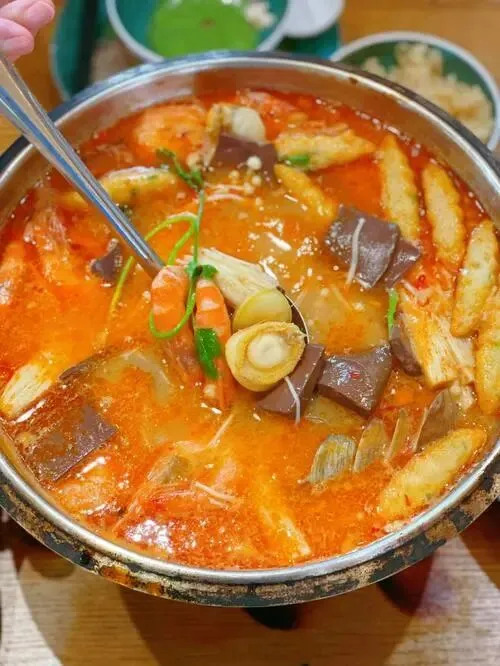 中午试糟粕醋火锅,酸鲜顶头,鱼虾下锅两分钟就起,别煮过。
