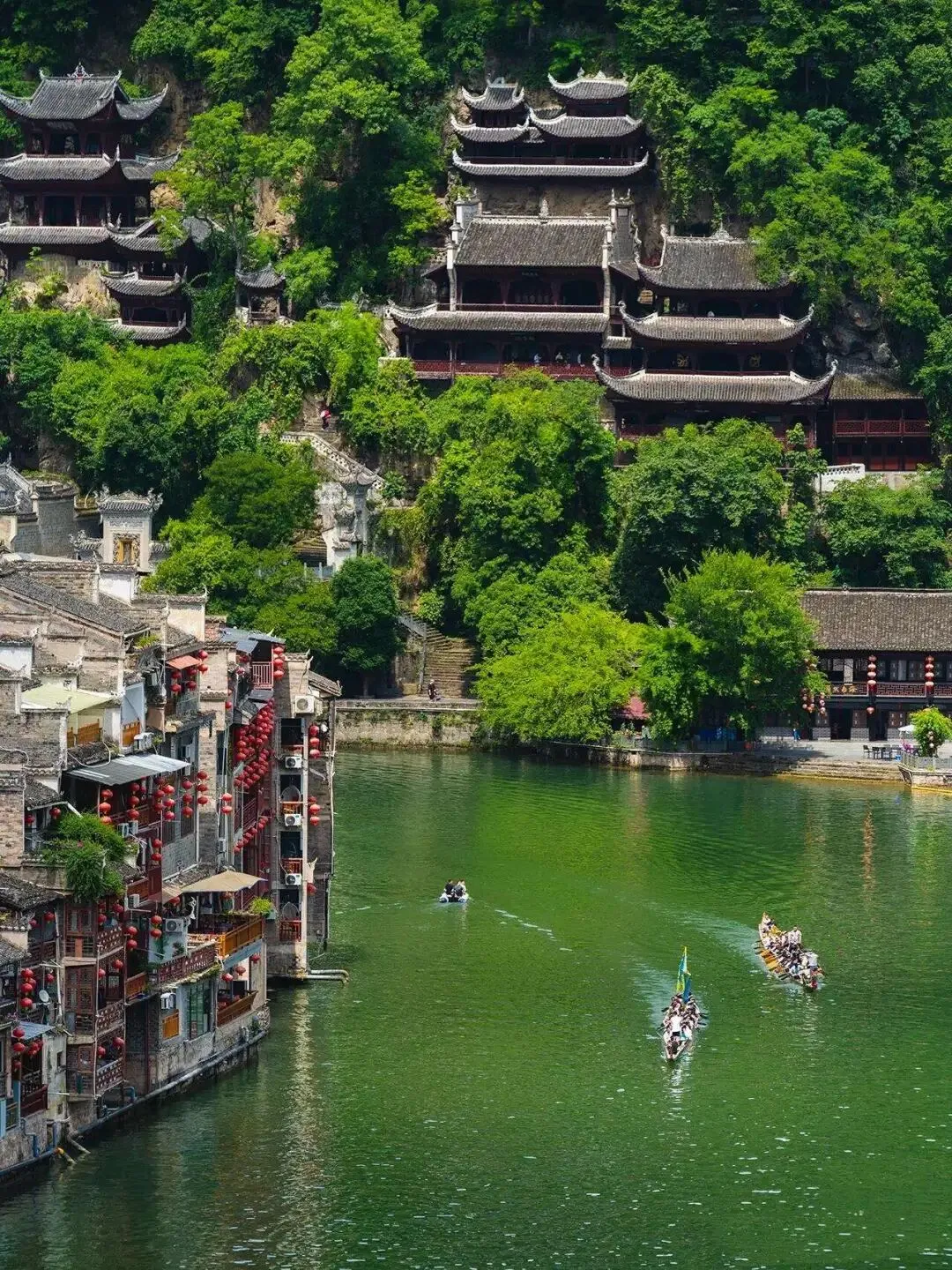 躺在新.大桥边的客.栈.阳台上,看脚.下深绿的舞阳河穿城.而过,乌篷船.慢悠悠地摇.。等到晚上七点,.两岸的古建筑灯一亮,倒.影碎在河里,.比白天.还.好看。