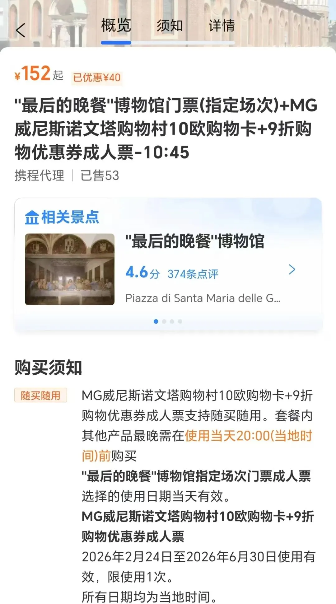 抢票官网:https://cenacolovinciano.vivaticket.it/en/