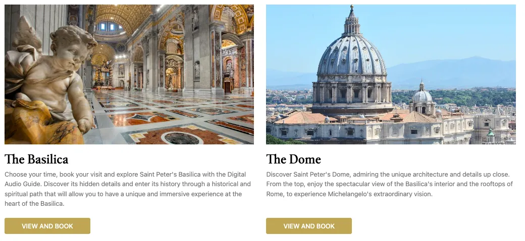 圣彼得大教堂是相对最好约的,淡季(11月-次年3月)建议提前1-2周预定即可,旺季(4月-10月,尤其6-8月),提前1-2个月预定。