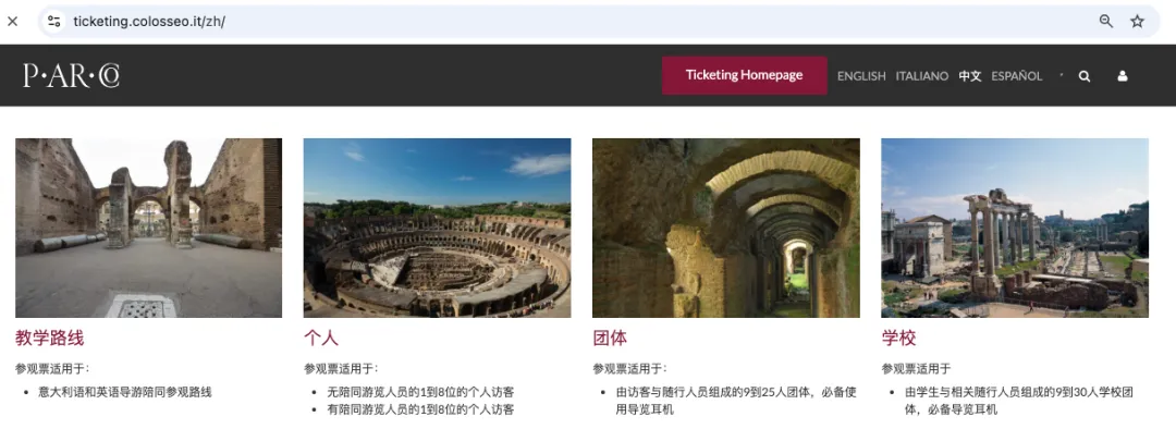 斗兽场官网:https://ticketing.colosseo.it/zh/