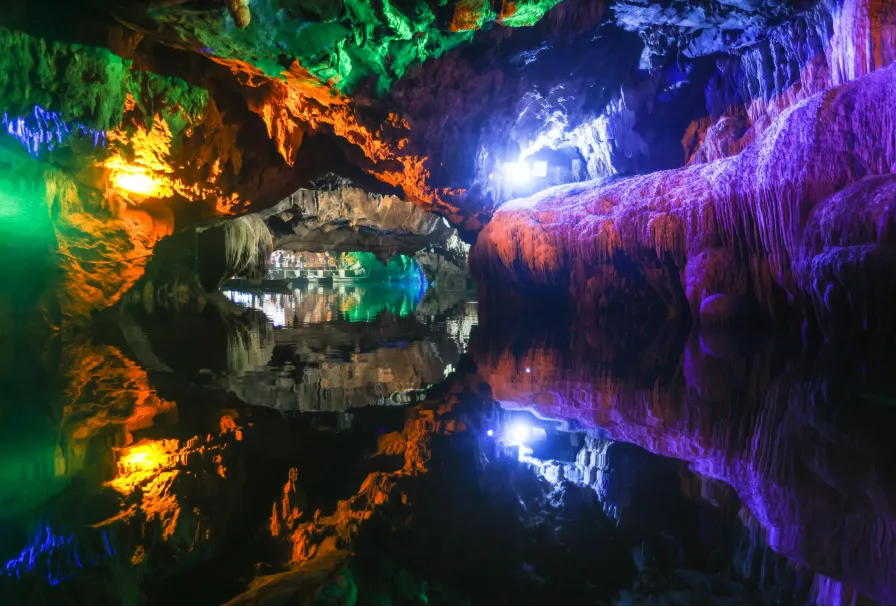 仙桥地下河景区用民间传说中的“仙桥”命名,位于广东省北部,与广州相距 138 公里,距英德市区 25 公里。仙桥地下河形成于 2.5亿年前,全长13000 米,由两段暗河一段明河连通一体,第一段暗河长 300 米,明河长 2000 米,第二段暗河长 2700 米,(已开发 1300米),为亚洲地下河长度之最。