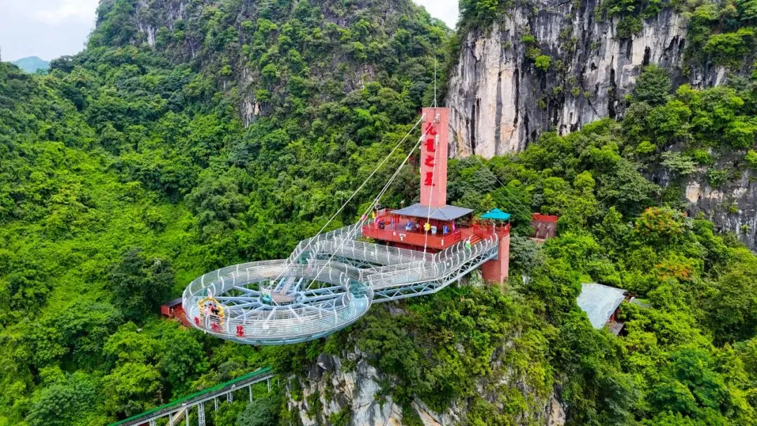 核心体验丰富,有垂直天梯、广东海拔最高的高空玻璃天桥、索道缆车等;同时融合壮瑶民族风情,可体验五色饭、瑶族腊肉等特色饮食与民俗节庆活动。山顶观景台可远眺粤湘桂三省风光,是集生态观光、户外探险、文化体验于一体的综合性旅游目的地。
